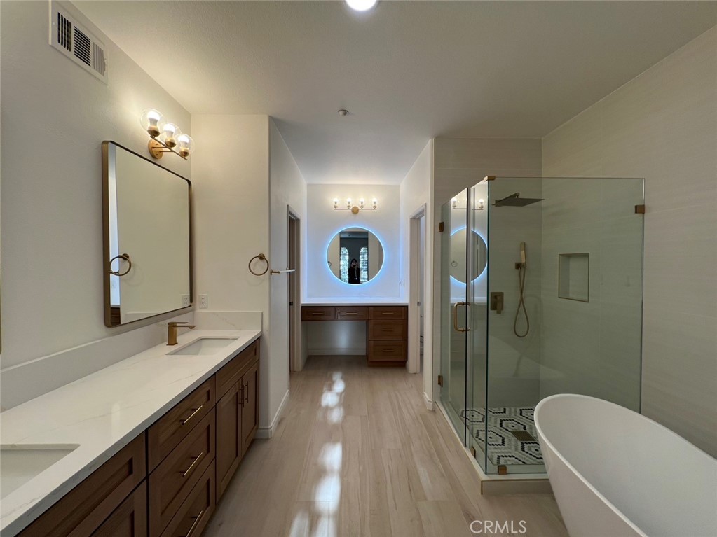 Experience sophisticated Southern California living in Quail Hill's upscale Ambridge community! This immaculate Residence 4A by William Lyon Homes boasts 3 FULL bedrooms (including one on the main level), 3 FULL bathrooms, and a rare premium lot with greenbelt views across from a park/tot lot. Spanning approximately 1,911 sq. ft., the home features an open floor plan with upgraded wood laminate and tile flooring, plantation shutters, recessed lighting, and fresh custom paint. The gourmet kitchen shines with maple cabinetry, granite countertops, a full backsplash, stainless steel appliances, and a sit-up breakfast bar. Relax in the private master suite with a walk-in closet and oversized en-suite bathroom with a soaking tub and shower. Community amenities include 5 parks, 3 pools, a remodeled fitness center, BBQ areas, and scenic hiking trails, all within the award-winning Irvine Unified School District. Minutes from top-rated schools, shopping, freeways, Irvine Spectrum, and Laguna Beach, this home perfectly blends comfort, convenience, and luxury!