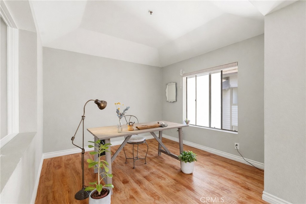 Come home to this beautifully upgraded top-corner end-unit 2-bedroom, 2-bath condo with an office in the guard-gated Windemere community in the heart of Torrance. Featuring one of the largest single-level floor plans, this bright home offers abundant natural light, laminate hardwood floors, crown molding, recessed lighting, and a remodeled kitchen with granite countertops. The primary suite includes a spa-like bathroom with dual vanities and a walk-in shower, while the office provides a perfect space for working from home. Enjoy a private balcony overlooking landscaped grounds, in-unit laundry, and a newer AC system replaced in 2019. Windemere offers resort-style amenities including 24-hour security, pools, spas, fitness center, racquetball courts, and clubhouse, just steps from Charles H. Wilson Park and its popular Farmers Market, and minutes from beaches, shopping, and dining.